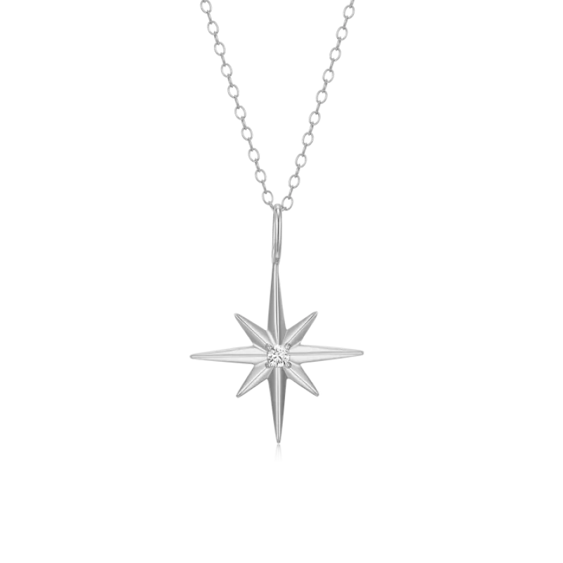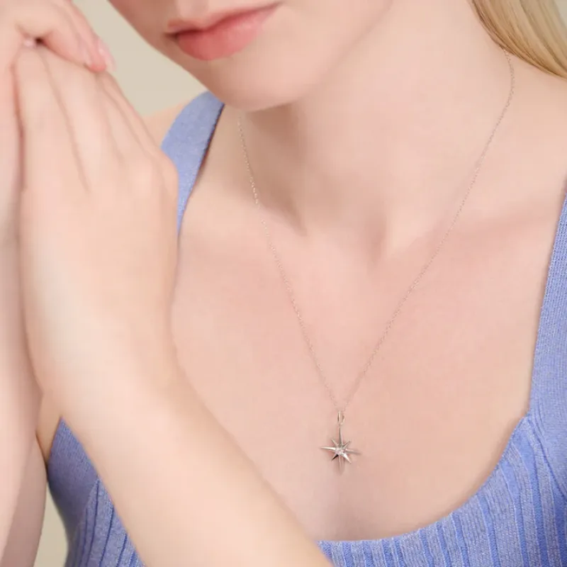 North Star Pendant Necklace in Rhodium-Plated Sterling Silver