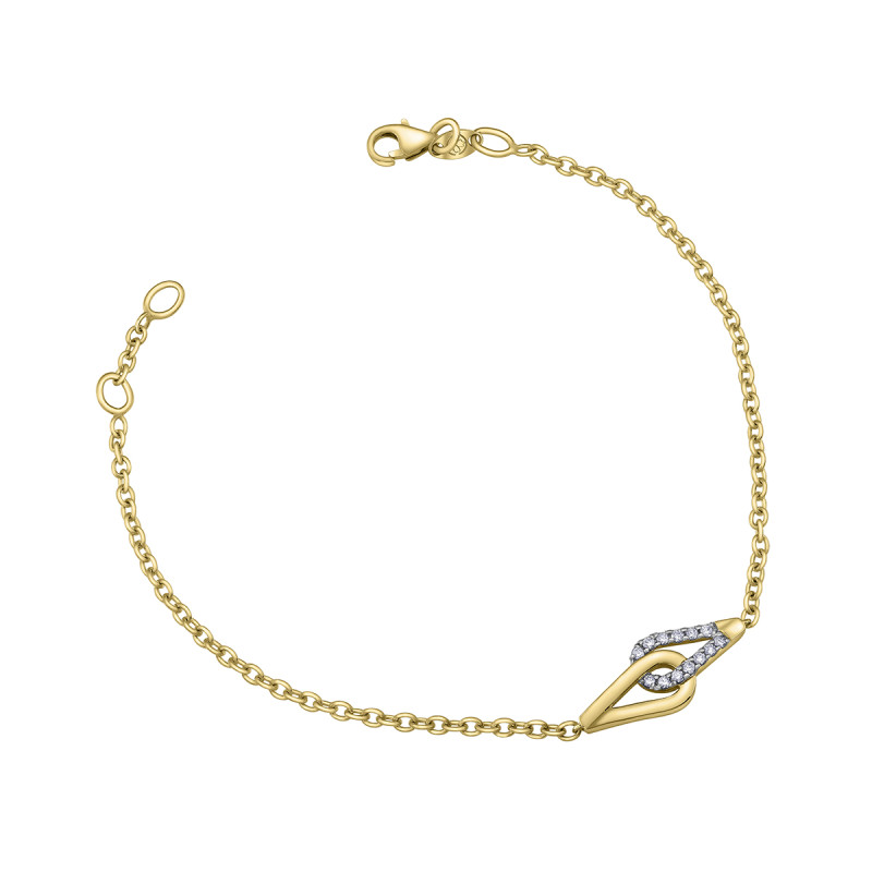 10K Certified Canadian yellow gold bracelet with interlocking hoops of gold and 0.10 carats of diamond.