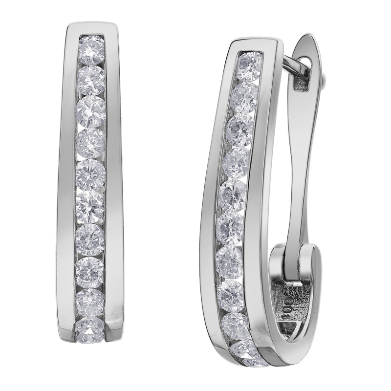10K Certified Canadian white gold hinged hoop earrings, each featuring 13 channel set diamonds with a total diamond weight of 0.50 carats (1.00 for the set).