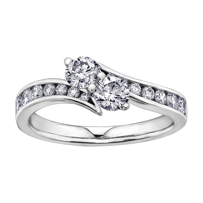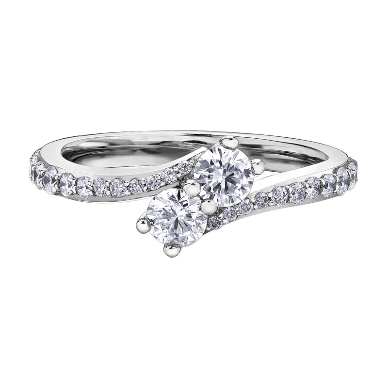 10K Certified Canadian white gold ring featuring 2- .08ct centre diamonds and 16 diamonds on the shoulders with a total weight of 0.17ct, combining for a total weight of 0.33ct for the entire ring.