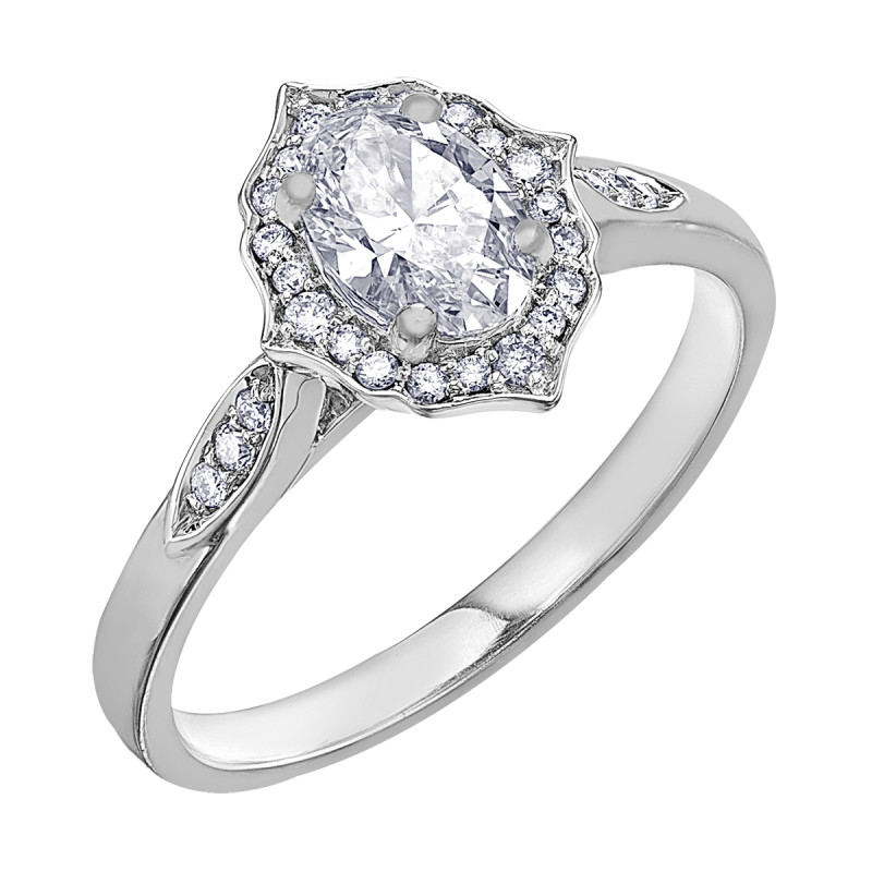 This centre Canadian diamond is tracked in strict accordance to The Canadian Diamond Code of Conduct for its entire journey, from its point of extraction, through the cutting and polishing process, to our store. To guarantee the tracking process the girdle is laser-inscribed with a unique tracking number, and a certificate corresponding to that number is provided with purchase of this ring.
