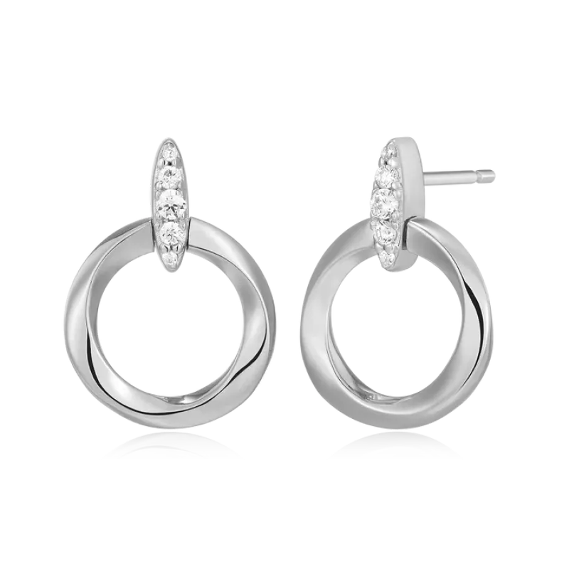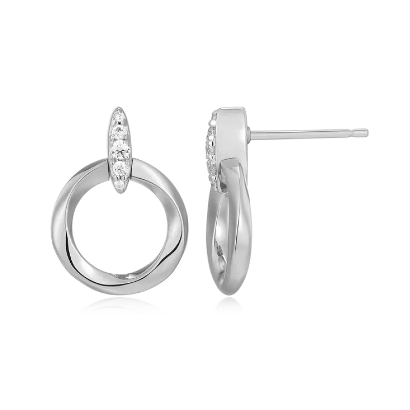 These classic stud earrings showcase knife-edge circle links adorned with lab-created diamonds set in rhodium-plated sterling silver for a timeless design.