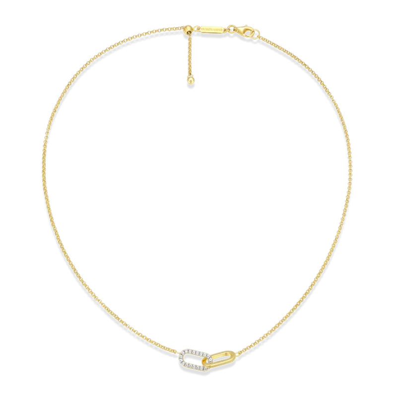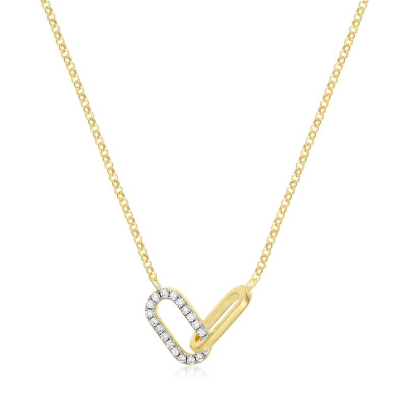 Add a touch of sleek sophistication to your neckline with our Twin Paperclip Necklace! Showcasing twenty dazzling lab-created diamonds along a stylish rolo chain, it features an adjustable bolo slider and lobster clasp for a personalized fit. Crafted in radiant 18K yellow gold-plated sterling silver, it's your new favorite statement piece for everyday glamour!