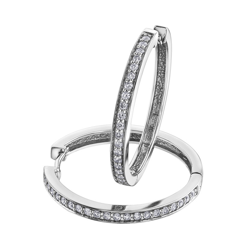 10K Certified Canadian white gold hinged hoop earrings, each featuring 20 diamonds with a total diamond weight of 0.25 carats (0.50 for the set).