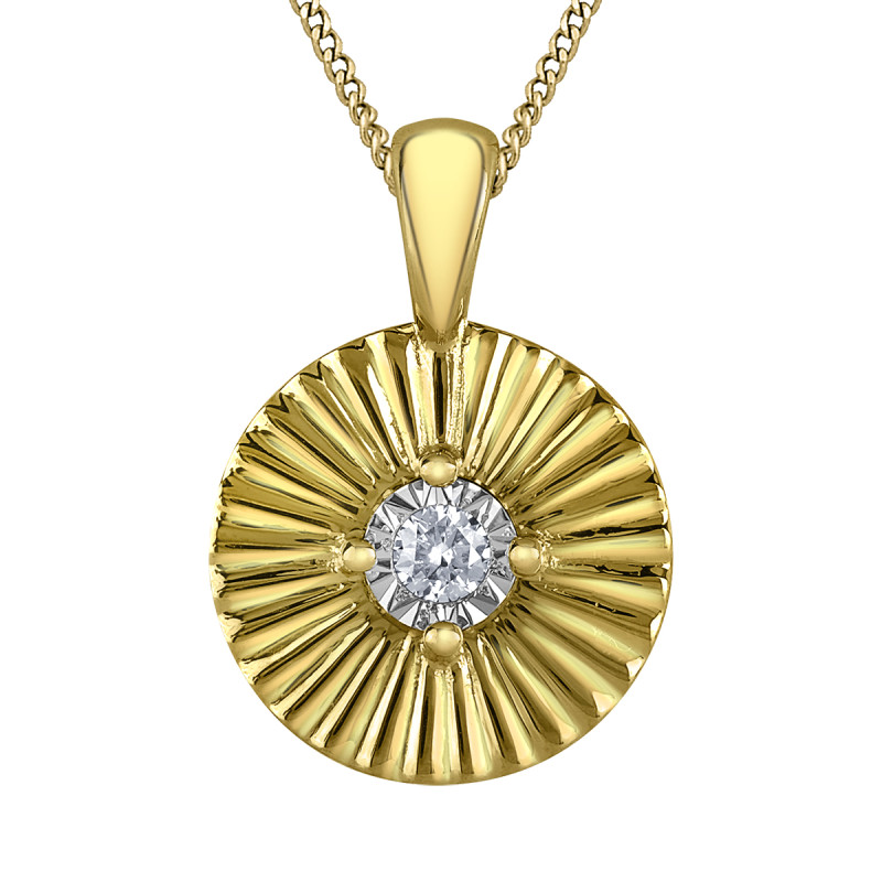 10K Certified Canadian yellow gold pendant set with a 0.04ct diamond in an illusion setting.