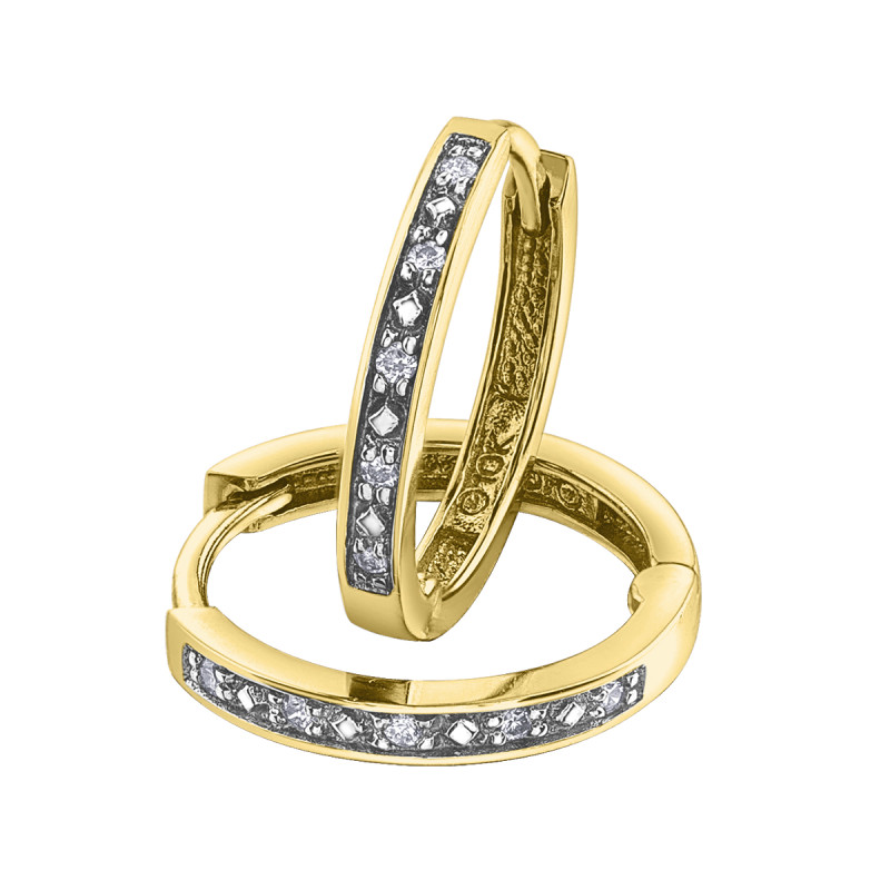 10K Certified Canadian yellow gold hinged hoop earrings, each featuring 5 diamonds with a total diamond weight of 0.025 carats (0.05 for the set).