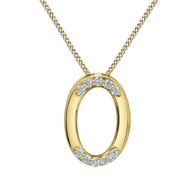 Oval shape pendant necklace, featuring 0.05ct of total weight of lab grown diamonds set in 10K yellow gold.